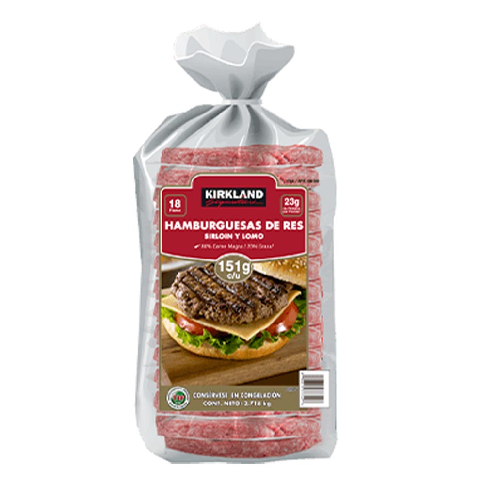 Kirkland Signature Hamburguesas Sirloin Y Lomo De Res 18 Pzas